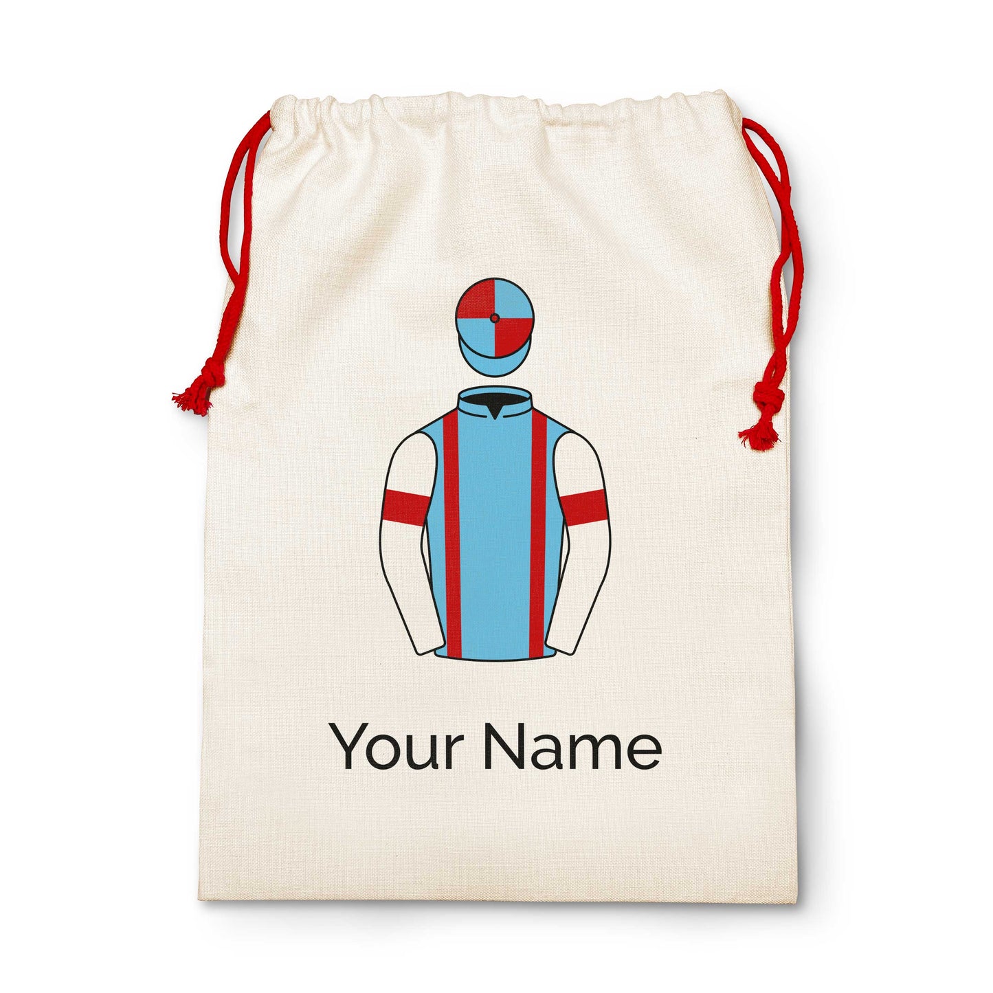 Horse Racing Christmas Sack in the Colours of Kate And Andrew Brooks